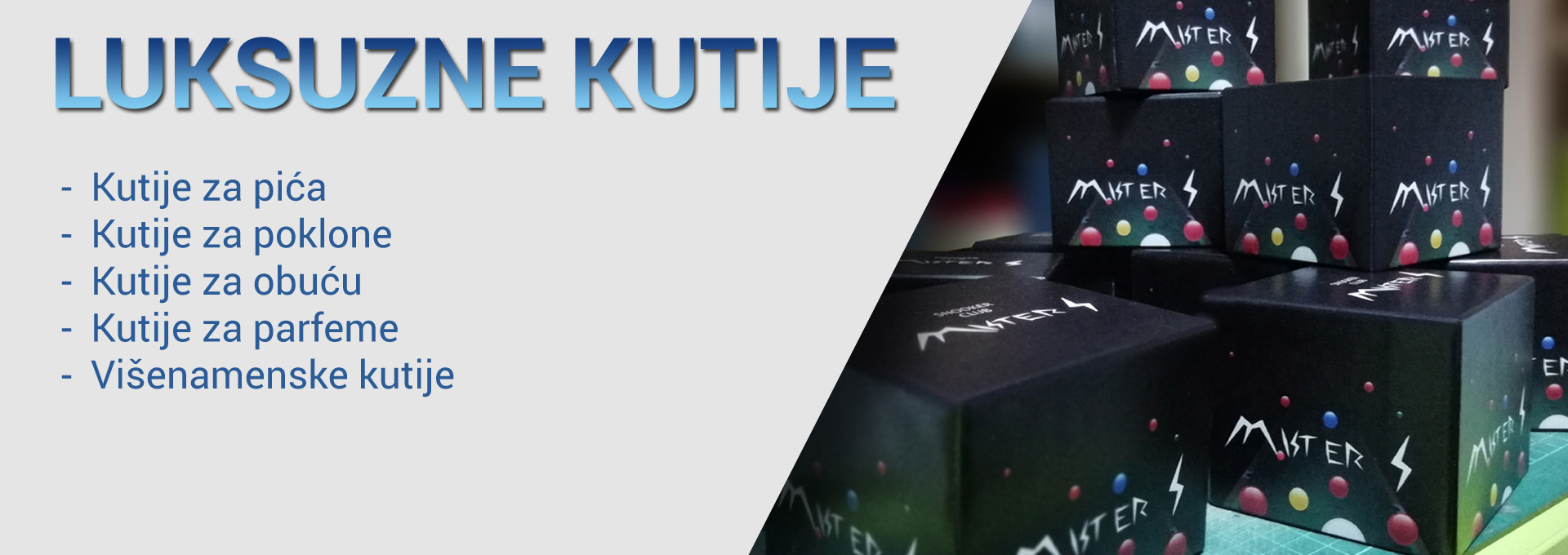 IZRADA LUKSUZNIH KUTIJAIzrađujemo luksuzne kutije za pakovanje koristeći najkvalitetnije materijale i nenadmašnu izradu. Kada se iskustvo pravilno upotrebi, a znanje i mogućnosti poklope, rezultat je uvek izvanredan i nezaboravan, kao vredan poklon od srca u prelepoj luksuznoj kutiji. Nakon dugogodišnjeg iskustva u štampanju i dizajnu, napravili smo proizvod koji je namenjen vrhunskom pakovanju - luksuznu čvrstu kutiju.